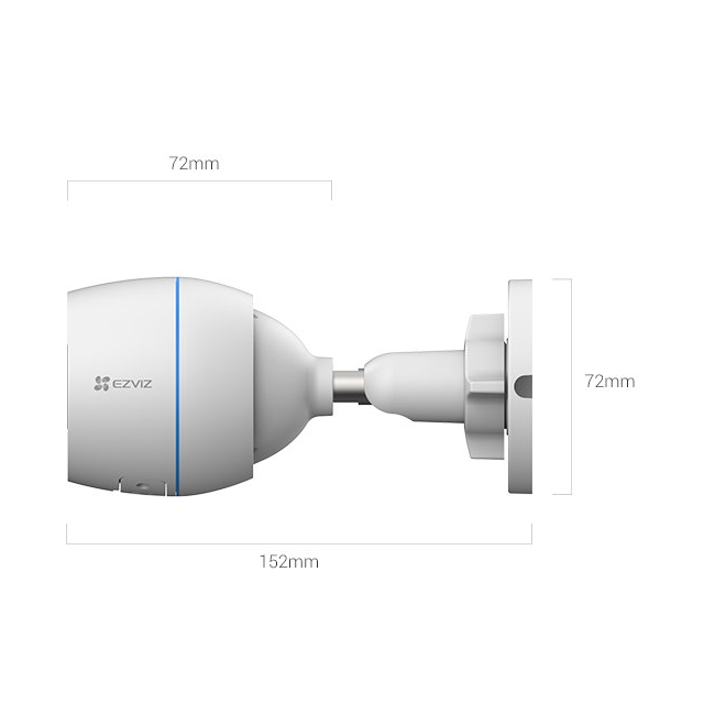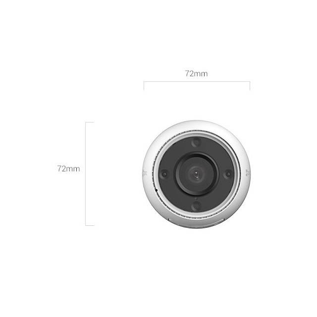 EZVIZ, CS-H3c, 1920x1080 (1080P), H.264/H.265, IR hasta 30 m, 2.8 mm, Wi-Fi 2.4 GHz, 1x RJ-45 (10/100 Mbps), IP67, slot microSD hasta 512 GB, adaptador de energía. Precio no incluye IVA.