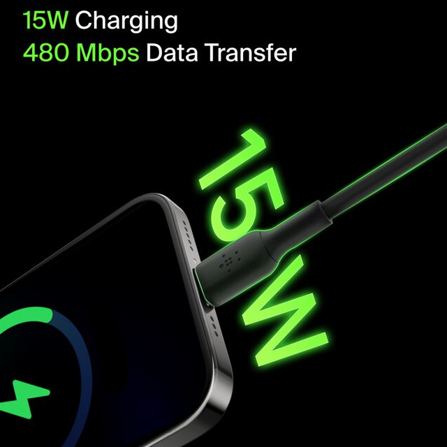 Belkin, CAB001bt1MBK, USB-C a USB-A, 15 W, material del forro PVC, longitud 1 metro. Garantía 1 año. Precio no incluye IVA.