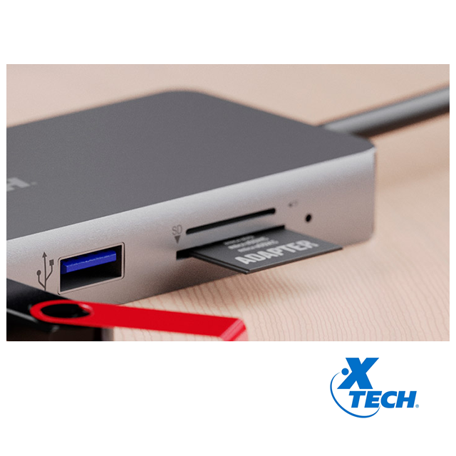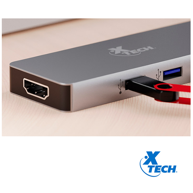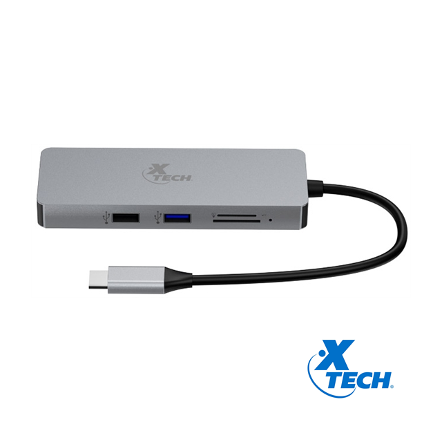 Xtech, XTC-564, adaptador multipuerto, entrada USB-C, salidas: 1x USB-A (H) 3.0, 1x USB-A (H) 2.0, 1x HDMI (hasta 4K/30 Hz), 1x SD, 1x microSD/TF. Precio no incluye IVA.