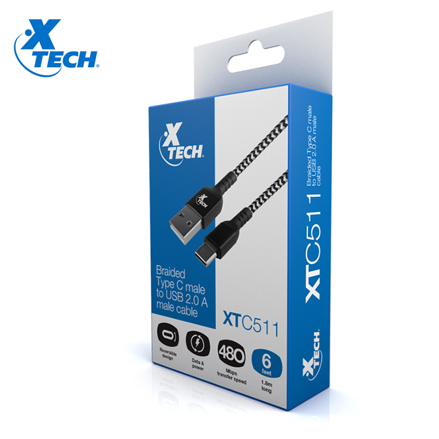 Xtech, XTC-511, cable convertidor de USB-C a USB-A (2.0), para carga de alta velocidad y transferencia de datos, revestimiento PVC, 1.8 metros. Garantía 1 año. Precio no incluye IVA.