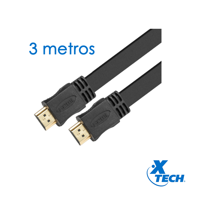 Xtech, XTC-410, cable HDMI Flat (plano) 3 m, calibre 30 AWG, Hasta 4k Ultra HD, contactos enchapados en oro. Precio no incluye IVA.