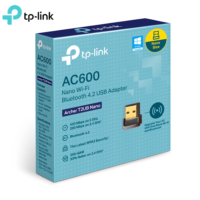 TP-Link, Archer T2UB Nano, Convierte un puerto USB en Wi-Fi y en Bluetooth 4.2, AC600, Wi-Fi 5, doble banda, diseño nano. Garantía 1 año. Precio no incluye IVA.